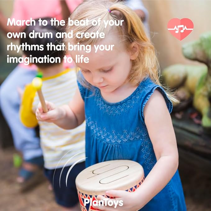 • REAL WOODEN DRUM FOR TODDLERS: Introduce your child to rhythm and sound with the PlanToys Solid Drum—a beautifully crafted wooden drum designed for toddlers. Made for ages 18 months and up, this kid’s musical toy encourages rhythm, beat recognition, and early auditory development through fun, hands-on play.