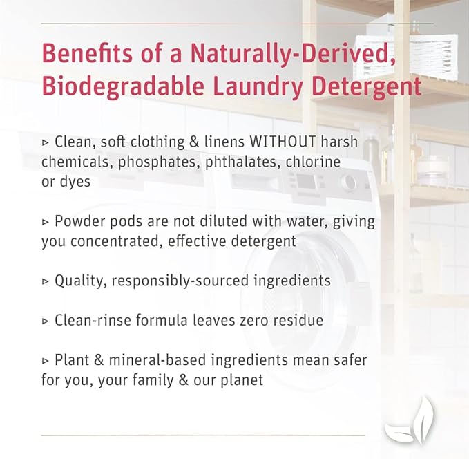 • No Harsh Chemicals: Our laundry solutions are septic safe and made from naturally derived plant and mineral based ingredients to ensure the best cleaning products with no phosphates, phthalates, chlorine, toxins, dyes or masking agents