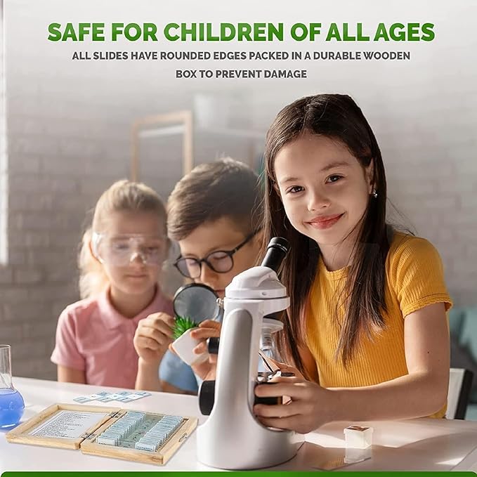 AmScope PS25W Prepared Microscope Slide Set for Basic Biological Science Education, 25 Slides, Includes Fitted Wooden Case