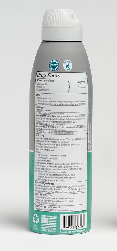 • THE GO-TO SUNSCREEN FOR ACTIVE LIFESTYLES: Aloe Up's sport sunscreen spray provides broad spectrum protection at the touch of a button– perfect for those on the go. With an aloe-enriched formula, our spray will protect your skin in the harshest environments, wherever your adventure brings you.