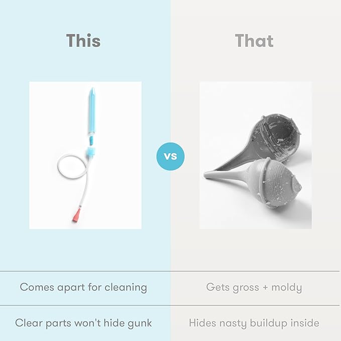 • GENTLE & NON INVASIVE: NoseFrida SnotSucker nasal aspirator for baby ensures comfort by creating a seal with the exterior of the baby's nostril, allowing for gentle and effective suction without intrusion.