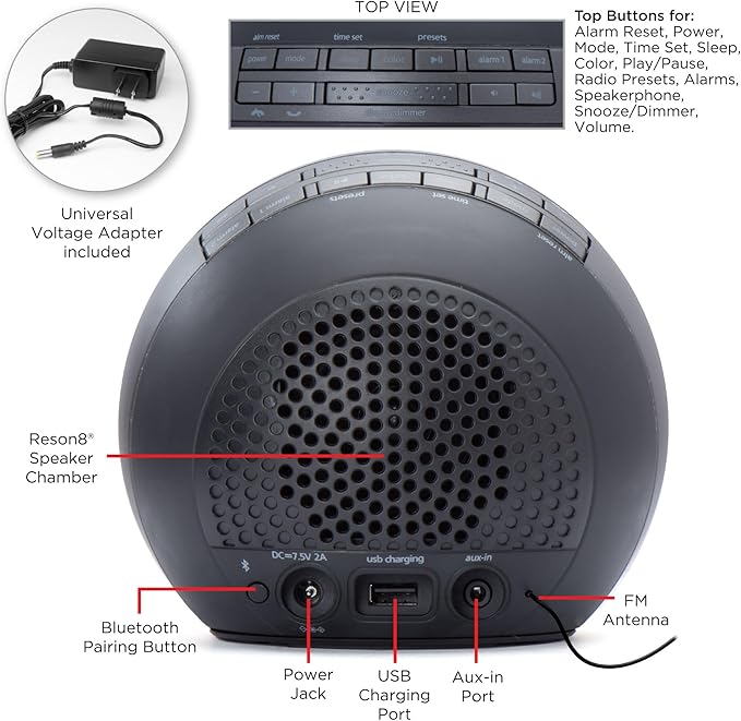 • Alarm Clock Radio: Customize your sleep routine with dual alarms that can be set and used independently. Wake to Bluetooth audio, FM radio, or built-in tone. Select up to 6 FM radio presets for easy access to your favorite stations.