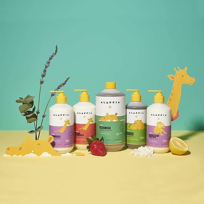 • KIDS SHAMPOO & BODY WASH. Alaffia’s playful coconut strawberry shampoo & body wash, prepared with Ethically Traded virgin coconut oil, strawberry and hibiscus, nourishes and softens hair and skin. Gentle and non-irritating for EveryDay clean fun.