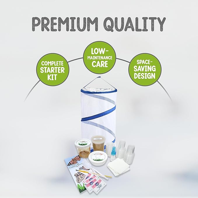 • Easy & User Friendly: The included rearing supplies make this kit simple to use. Your butterfly kit with live caterpillars includes 32 small cups, a transfer brush, food, mister, butterfly feeder, sugar, eye dropper, easy instructions, and a life cycle coloring page.