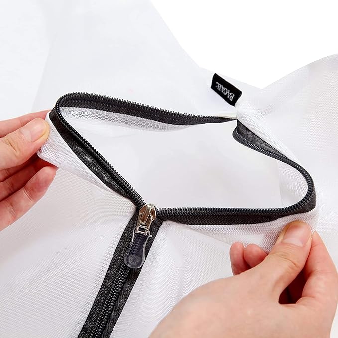 • Auto-locking zipper: The zipper can be locked automatically so that the zipper will not be opened during washing; the zipper cover provides extra protection for the zipper; that would protect the garment throughout the wash