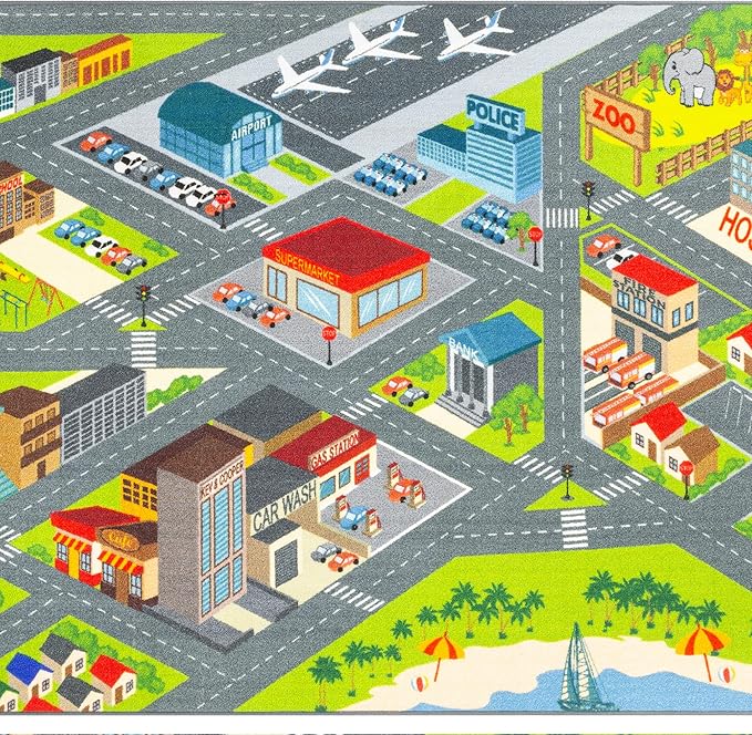 • TAKE YOUR IMAGINATION FOR A RIDE: Designed for interactive fun, this updated take on the classic play rug lets kids drive their toys through a vibrant city layout. Perfect for solo play or sharing with friends.