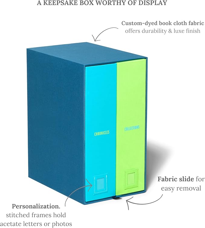 Savor | Deluxe School Years Keepsake Box | Fabric Bound Acid-Free Childhood Keepsake and Memory Organizer with Labels for Birthday, Graduation, Mitzvah, Mother’s Day, and Baby Shower