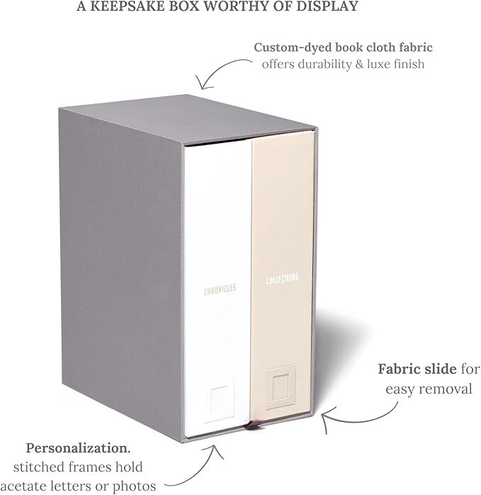 Savor | Deluxe School Years Keepsake Box | Fabric Bound Acid-Free Childhood Keepsake and Memory Organizer with Labels for Birthday, Graduation, Mitzvah, Mother’s Day, and Baby Shower