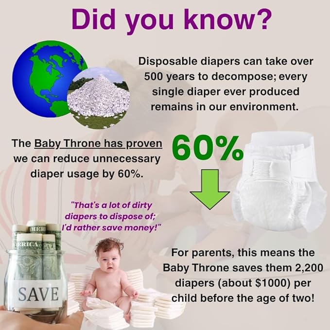 • OPTIMAL SQUAT POSITION (The Baby Throne is the ONLY baby potty & toilet seat toddler with a PATENTED squat design): Squatting helps constipation & cramps especially when trying different solids by triggering the instinct to push (easy toilet training) & allowing easy complete bowel elimination (healthier!). Award-winning, expert design by an engineer mother & physiotherapists. Pediatrician endorsed.