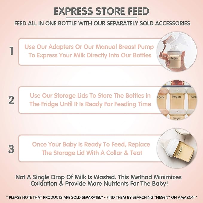 hegen Baby Bottles - Anti Colic Baby Bottles Wide Neck - Breastfeeding System 5 oz with Slow Flow Teats (2 Pack)