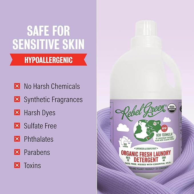 • Fresh & Clean: Rebel Green's USDA Certified Organic laundry soap is incredibly effective; this high-quality detergent is made with a 3x concentrated formula designed to deeply clean your clothes with gentle ingredients you can trust