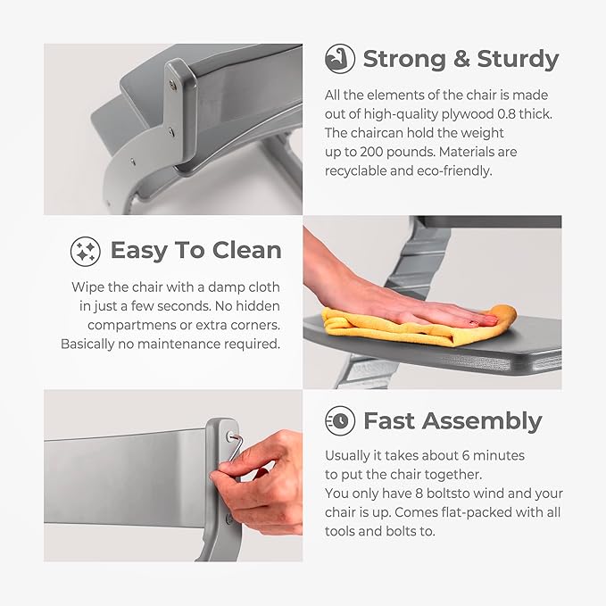 • ✔️ THE LAST CHAIR YOU'LL EVER NEED TO BUY: An intelligent investment for savvy parents. This chair grows with your child, converting from a toddler dining chair to a youth desk chair that safely holds up to 200 lbs. Say goodbye to gear they outgrow in a flash.