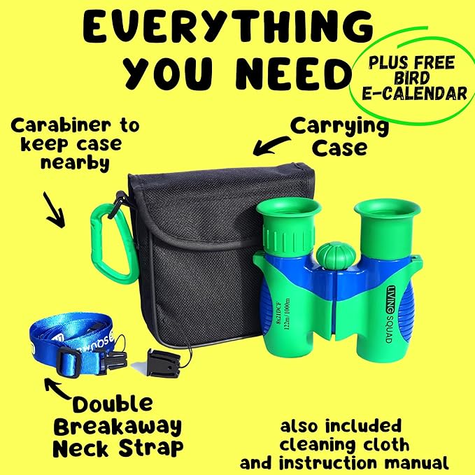 • Special Feature : Durability: Shock Resistant, Slip Resistant, Water Resistant, Ergonomic Colorful Kids Design, Portable, Hands-free case, Lightweight, High Magnification, BAK4 Prism, 8x21 Magnification, Carabiner, Compass, Manual Focus: Focus Knob, One Hand Focus, Safety Measures: Soft Rubber Eyecups, Break-away Strap, Large Eyecups, Food grade Rubber Durability: Shock Resistant, Slip Resistant, Water Resistant, Ergonomic Colorful Kids Design, Portable, Hands-free case, Lightweight, High Magnification, BAK4 Prism, 8x21 Magnification, Carabiner, Compass, Manu… See more