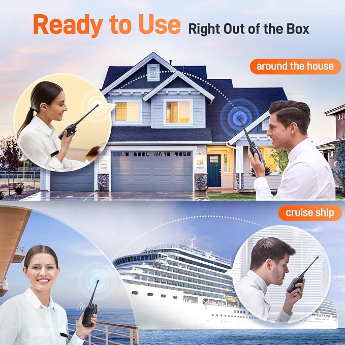 • Range is very dependant on terrain;up to 5 miles with no obstructions,less in congested area;work great in a commercial construction or around the house;suitable for security team;maintenance team; construction team; warehouse; factory; police; airsoft; kitchen staff;hotel;retail store;at the school;events communications;roadtrip while driving in different cars;family camping and hunting;on a cruise ship;in mountains;it works worldwide;you can add as many as you want and they work great together