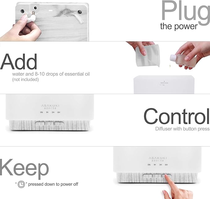 • Perfect For Different Occasions: The mist and light functions of this aromatherapy diffuser work separately. You can turn off the light at night while sleeping. Or use this diffuser as a nightlight. It's a wonderful companion for reading, sleeping, working or doing yoga.