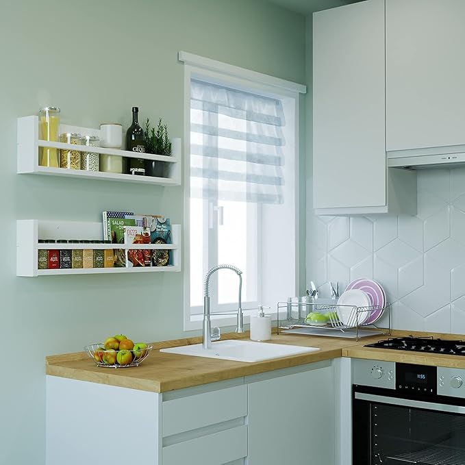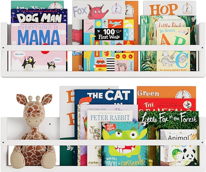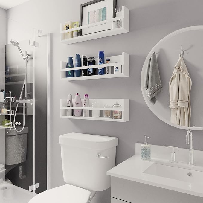 • Multiuse Shelf: Thanks to these storage shelves' wooden and simple design, you can use them not only in your kids room or nursery but also in different places. Mount them on your bathroom wall as a makeup organizer or your kitchen to store spice jars and display recipe books. you can use them not only in your kids room or nursery but also in different places. Mount them on your bathroom wall as makeup organizer or your kitchen to store spice jars and display recipe books.