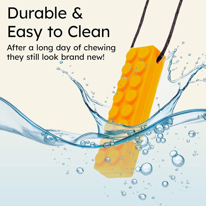 • Extra Bonus cord + Clasp Included – Each chew tool comes with a cord and breakaway clasp for safety purposes. Additionally, each pack of 3 comes with an additional cord and clasp in case one of the cords is accidentally broken. Cord and Clasp are not for chewing, children should be reminded to chew only on the Silicone brick