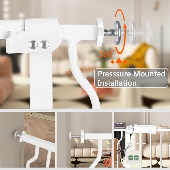• AUTOMATIC & MULTI-FUNCTIONAL: The baby gate will close automatically when handle is released. No need to worry about forgetting to lock the gate. Double sided design allows you open it from both directions for convenience. Suited for stairs, hallway, doorways, kitchen, living room and any open space