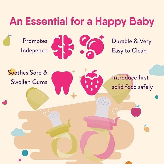 • ★ MOST VALUE FOR MONEY BABY FRUIT / FOOD FEEDERS & TEETHERS (2 PCS w 4 Silicone Teats) – NatureBond Baby Fruit Feeders and Teethers are designed in "APPETIZING" candy-like colors that stimulate baby’s appetite for consumption of natural nutrients from fruits and vegetables. It is also a safe way to introduce our little ones to solid food while they go through weaning and teething phase. The All-IN-1 feeder can also soothe baby's teething discomfort by massaging the gums through chewing.