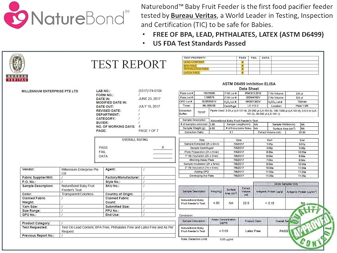 • ★ QUALITY & SAFETY ASSURANCE – It is the only baby food / fruit feeder that is certified by Word’s Leader in Testing, Inspection and Certification (TIC),Bureau Veritas USA, to be BPA Free, Latex Free, Lead Free and Phthalates Free.