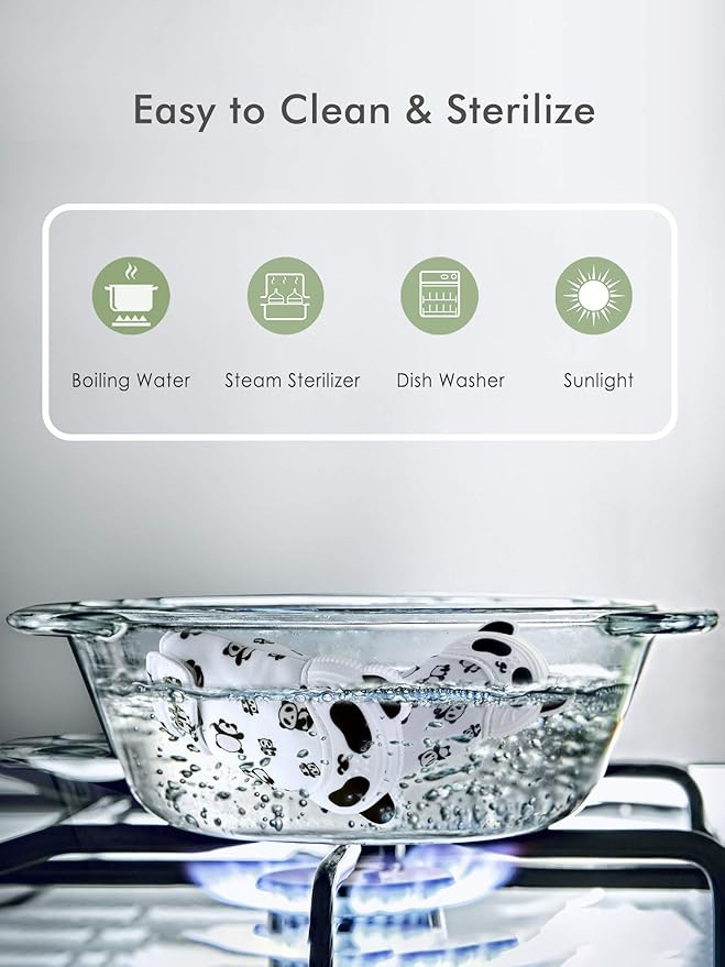 • MACHINE WASHABLE/DRYABLE: Easy to clean and sterilize, machine washable, safe in the dryer, dishwasher(top rack), hot water, steam sterilizer. Plus a bonus hygienic travel bag!