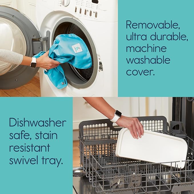 • MACHINE WASHABLE COVER | We all know that babies are messy eaters! Our portable booster seat is designed to effortlessly wipe clean, allowing more quality time with your precious tot. To assist with the inevitable mess, the fabric cover slides off the frame for machine washing - a must have for sanitizing and spaghetti stain removal.