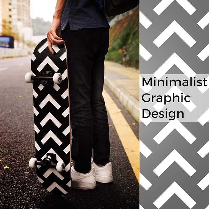 WhiteFang Skateboards for Beginners, Complete Skateboard 31 x 7.88, 7 Layer Canadian Maple Double Kick Concave Standard and Tricks Skateboards for Kids and Beginners