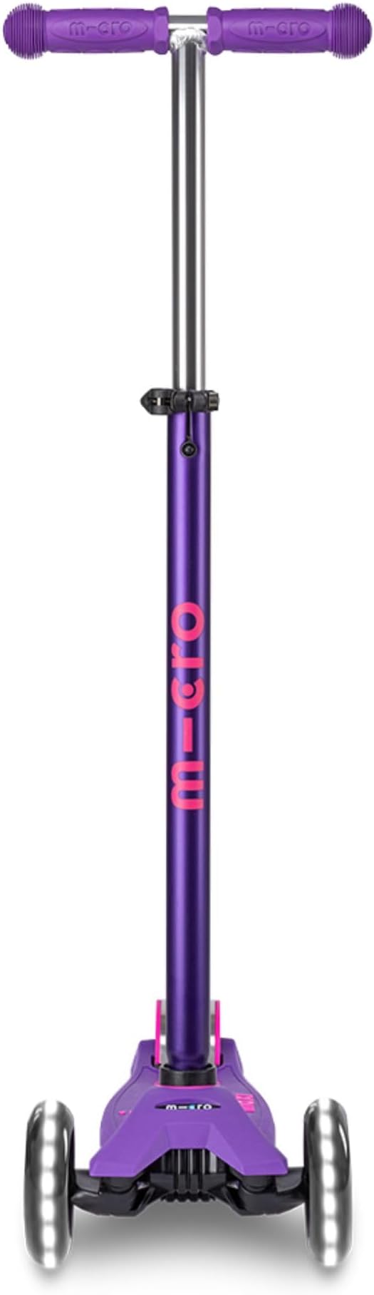 • Micro's 3-wheeled Maxi Deluxe LED scooter, with a lean-to-steer design, offers a stable ride that supports children as they curve and carve the sidewalk.. Features two front LED motion-activated light-up wheels. (No batteries required!)