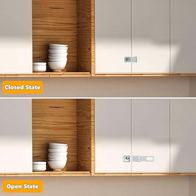 • 【Wide Applications】The locking hasp is suitable for installation in the place where you need to lock protect your house, property, and personal privacy. Such as all kinds of door, window, cabinet, drawer, furniture, pet cage, closets, cupboards, storage containers, sheds, storage bins, garage doors, tool boxes,sliding doors, wardrobes, fence,and etc.