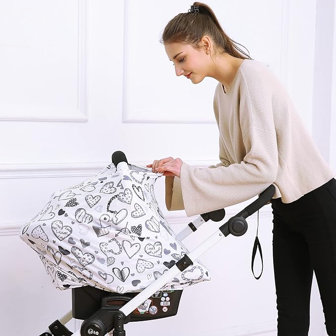 Baby Car Seat Covers, Carseat Canopy, Boys Girls Privacy Breastfeeding Cover (Grey Heart)