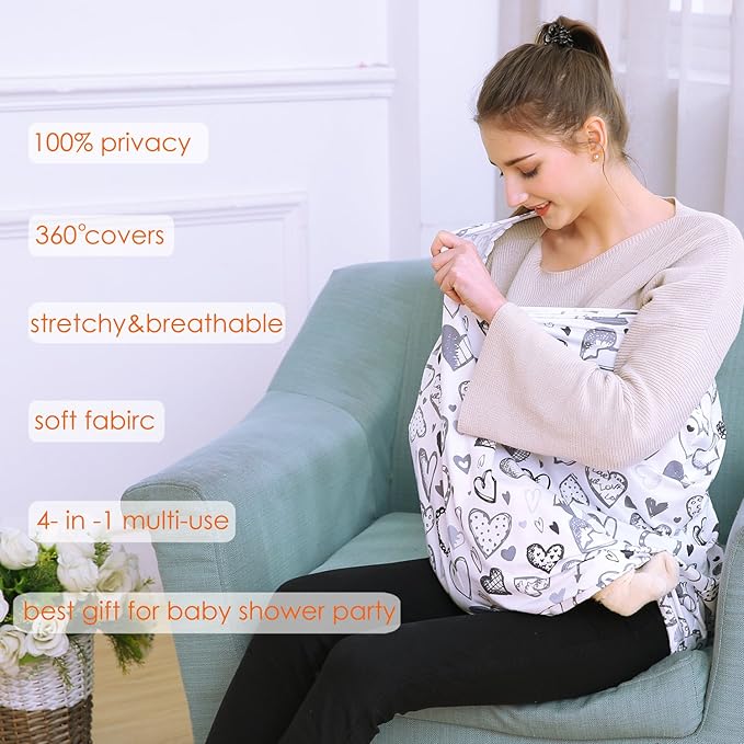 • Breastfeeding and soft, made of Spandex Mix Polyester, fits most car seats and nursing mothers, high chair and shopping cart.
