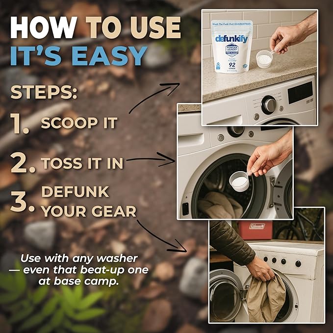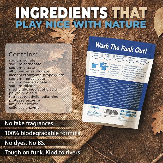 • ๐—ฃ๐—ผ๐˜„๐—ฒ๐—ฟ๐—ณ๐˜‚๐—น ๐—Ÿ๐—ฎ๐˜‚๐—ป๐—ฑ๐—ฟ๐˜† ๐—ฆ๐—ผ๐—ฎ๐—ฝ: Inside one small scoop of powder detergent for laundry is an industry leading stain remover, odor remover / eliminator & laundry stripper in one! While powerful, Defunkify's laundry detergent powder remains safe for sensitive skin, all fabrics & clothing types (including activewear & outdoor gear), & is environmentally friendly & eco-conscious w/ our patented ProvenSafe process & formula. ๐—ฃ๐—น๐—ฎ๐˜† ๐—›๐—ฎ๐—ฟ๐—ฑ, ๐—–๐—น๐—ฒ๐—ฎ๐—ป ๐—˜๐—ฎ๐˜€๐˜† ๐˜„/ ๐——๐—ฒ๐—ณ๐˜‚๐—ป๐—ธ๐—ถ๐—ณ๐˜†
