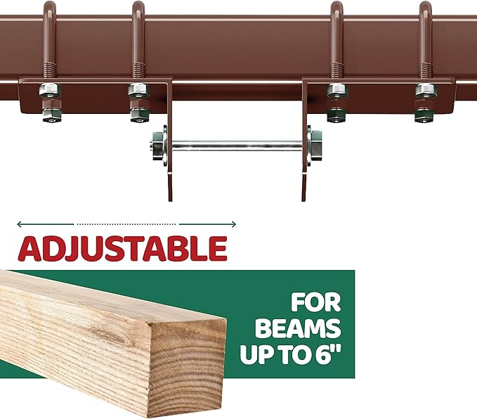 • 18" adjustable bracket, compatible with all swing set brands. All hardware needed to mount to a wooden beam