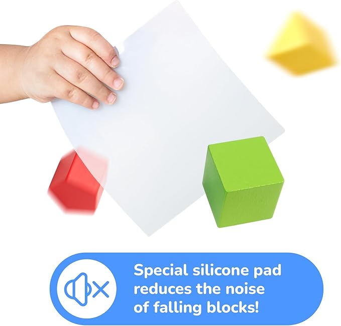 • Noise Elimination - Introducing the Silicone Pad that eliminates noise! The strategically positioned small pad allows for no disruptive noises caused by falling blocks in shape sorting toys.