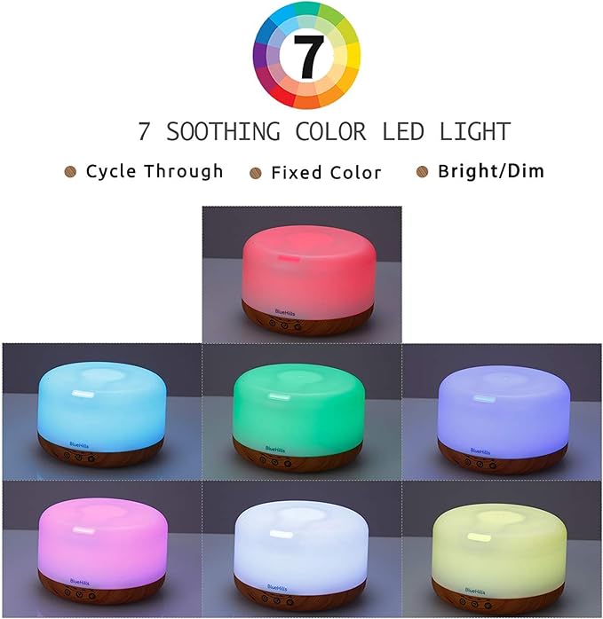 • Multifunctional aromatherapy device with remote: This essential oil diffuser is an amazing aromatherapy device unlike any other you've ever used. It features a huge and easy to clean 1000 ML water tank, 7 different LED light colors, multiple mist modes, as well as a safety auto-switch that prevents it from overheating in case it runs out of water.