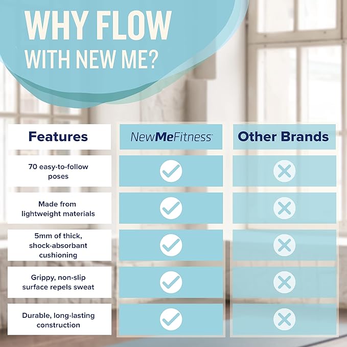 NewMe Fitness Yoga Mat for Women and Men - Large, 5mm Thick, 68 Inch Long, Non Slip Exercise Mats w/ 70 Printed Yoga Poses for Pilates, Workout and Stretching - Home and Gym Essentials