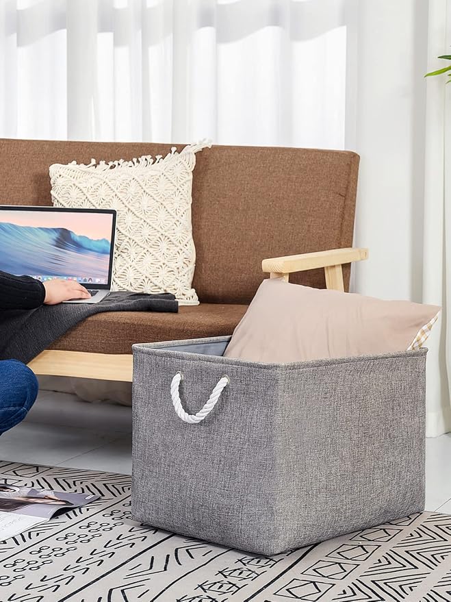 • DECORATIVE & ARTISTIC & GIFT BASKET - As a must have for home organization and storage, TheWarmHome organizer bins is the perfect gift basket. 1.TheWarmHome Bins had big storage capacity 2.Minimalist design and neutral grey color can be integrated into any home decorations and styles.3.Contrast other material, Fabric softer and Foldable, easy storage and clean, better use in home. 4.10 years + professional factory, Use better EVA fabric,TheWarmHome, WARM YOUR HOME