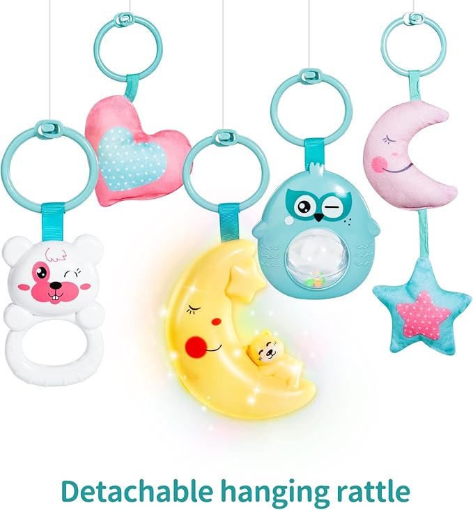 • A baby bear, a soft-to-touch heart, a cute owlet, a little star, and a funny crescent moon are detachable for tactile and gripping experiences to develop fine motor skills. These 0 to 36 months baby toys are designed to make the baby amused and entertained.