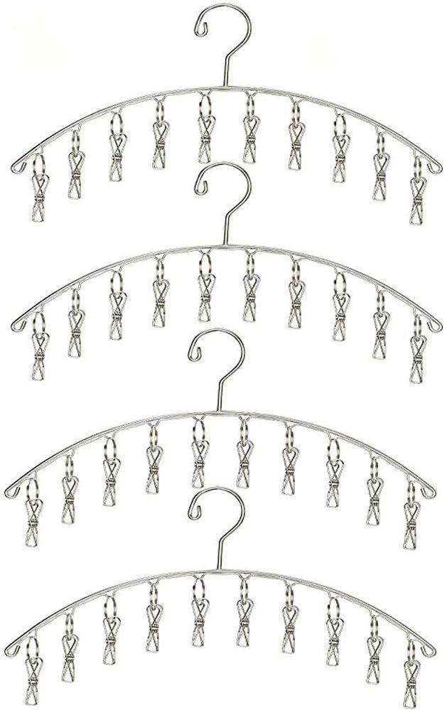 Toplife Clothes Hanger with 10 Clips, Stainless Steel, Windproof, for Drying Socks, Bras, Underwears, Baby Clothes, Hats, Scarfs, Towels, Pants and Gloves, Set of 4