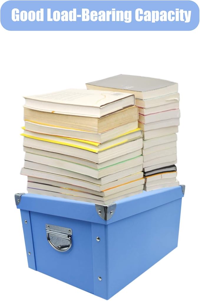 GUOZI Collapsible Storage Box, Decorative Memory Box with Lid & Metal Reinforced Corners, Cardboard File Bin with Handles, Organizer Gift Box for Keepsake Toy Photos Office Nursery Wardrobe Bookshelf