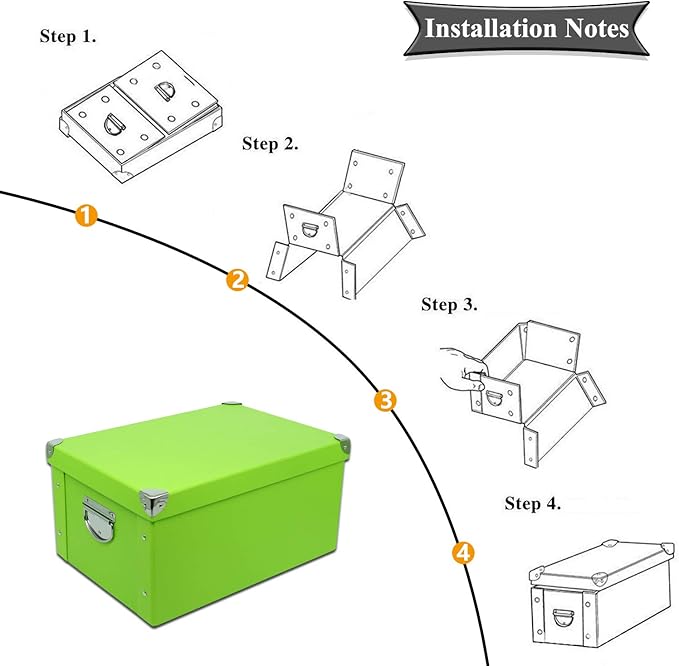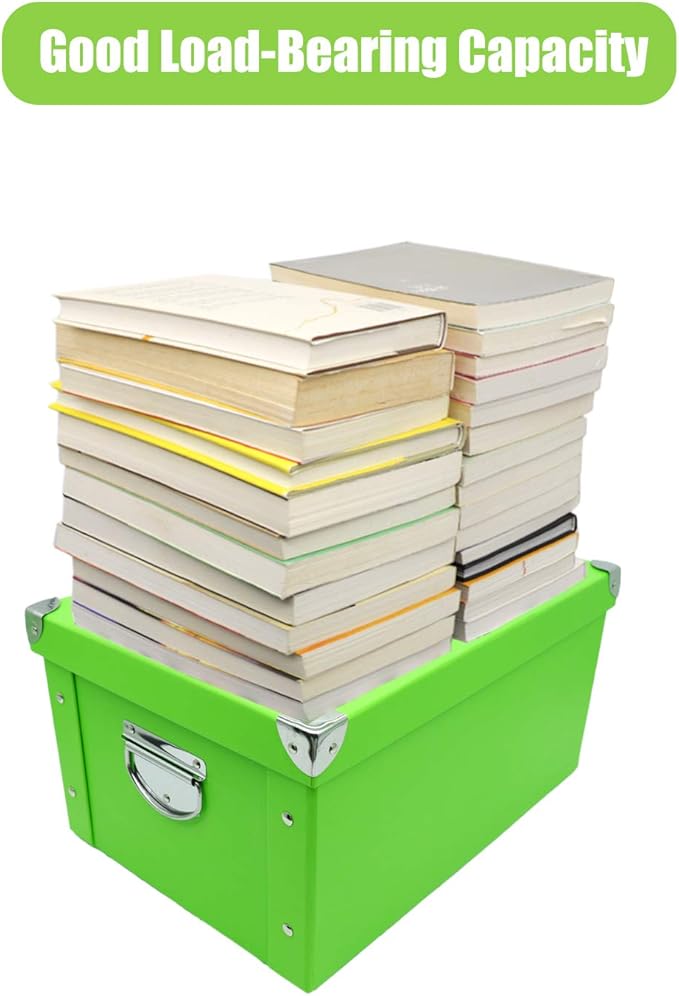 GUOZI Collapsible Storage Box, Decorative Memory Box with Lid & Metal Reinforced Corners, Cardboard File Bin with Handles, Organizer Gift Box for Keepsake Toy Photos Office Nursery Wardrobe Bookshelf