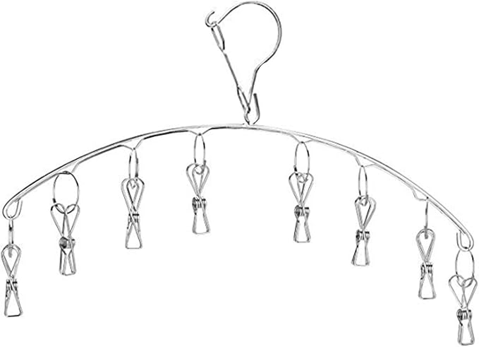 • Metal construction:stainless steel laundry hooks hanger with 8 pcs clothing clamps,strong bearing and high strength against corrosion rust,leaves no rust marks on damp clothing even no "pinch marks" on clothes