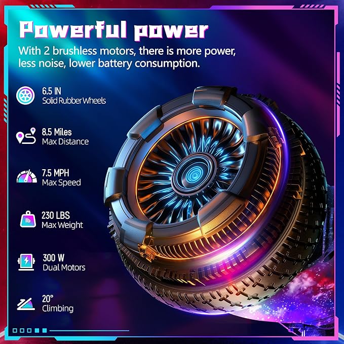 • ▶▶SELF BALANCING CONTROL SYSTEM - Full of technology and easy to learn for beginners and amateurs. Li-ion batteries, dual hub motors, quick charging and longer using time.