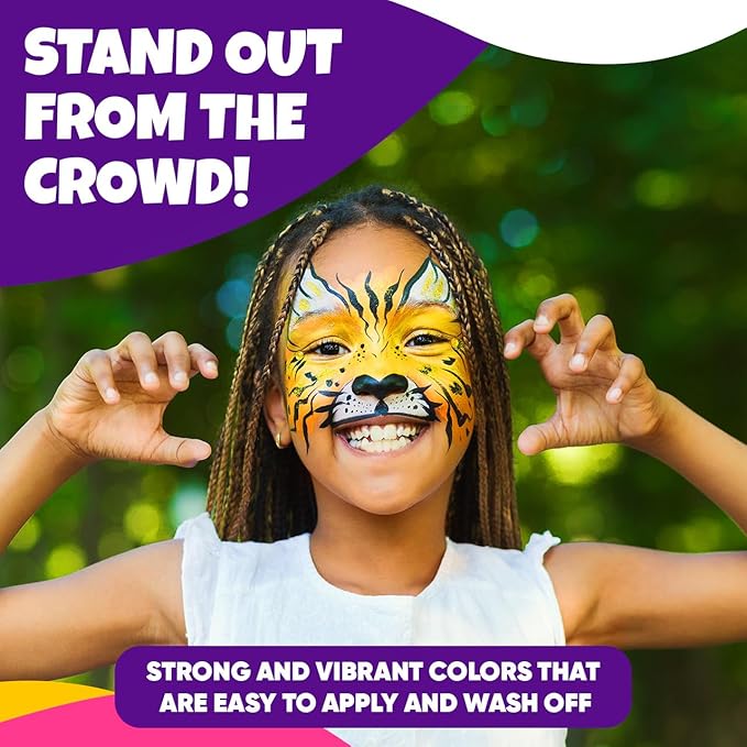 • 🎨 π—©π—œπ—•π—₯𝗔𝗑𝗧 π—–π—’π—Ÿπ—’π—₯𝗦 π—ͺπ—œπ—§π—› π—˜π—”π—¦π—¬ π—”π—£π—£π—Ÿπ—œπ—–π—”π—§π—œπ—’π—‘ - Our facepaint crayons glide smoothly on the skin, offering a brilliant and bright palette of colors, ideal for creating various designs with ease. At 3.25" long our waterproof face & body paint crayons are 30% longer than any other brand on the market ensuring durable wear for hours of playful imagination. With enough face makeup to be used for 100+ faces they are perfect for parties and events.