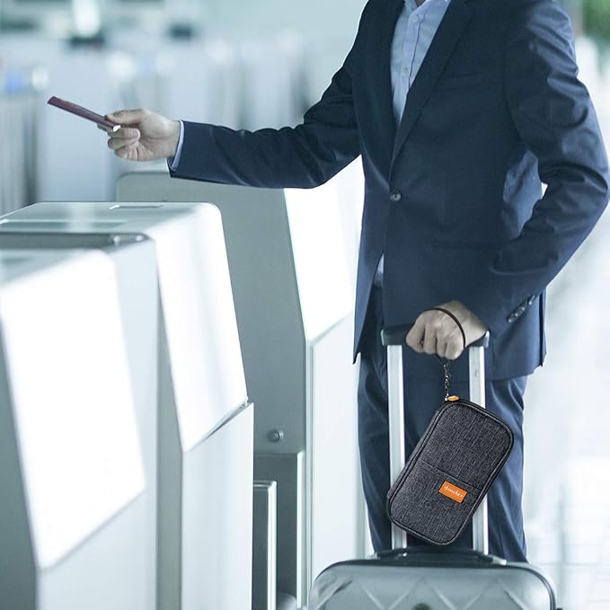 RFID Family Passport Wallet Holder Waterproof, Travel Document Organizer Credit Card Clutch Bag for Men Women