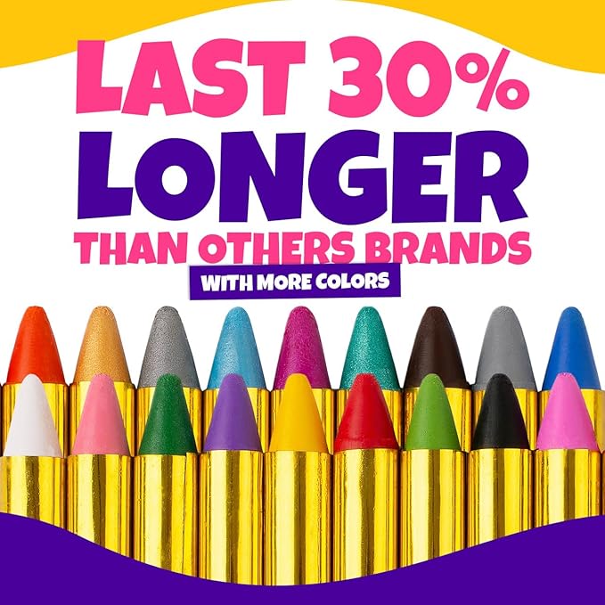 • 🎨 π—©π—œπ—•π—₯𝗔𝗑𝗧 π—–π—’π—Ÿπ—’π—₯𝗦 π—ͺπ—œπ—§π—› π—˜π—”π—¦π—¬ π—”π—£π—£π—Ÿπ—œπ—–π—”π—§π—œπ—’π—‘ - Our facepaint crayons glide smoothly on the skin, offering a brilliant and bright palette of colors, ideal for creating various designs with ease. At 3.25" long our waterproof face & body paint crayons are 30% longer than any other brand on the market ensuring durable wear for hours of playful imagination. With enough face makeup to be used for 100+ faces they are perfect for parties and events.