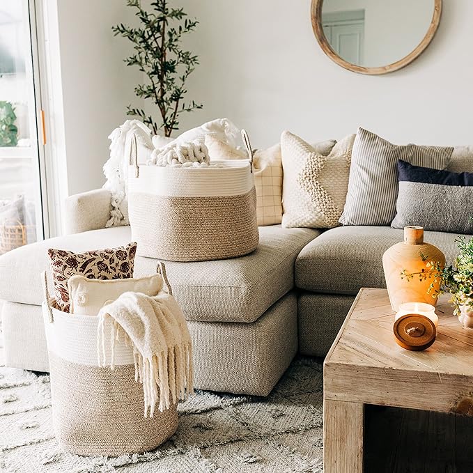 • Beautiful Addition to Your Boho Decor: Elevate your living room decor with this handwoven blanket basket. Neutral tones and minimalist design create a cozy, stylish vibe, perfect for farmhouse, Scandinavian, or boho decor aesthetics.