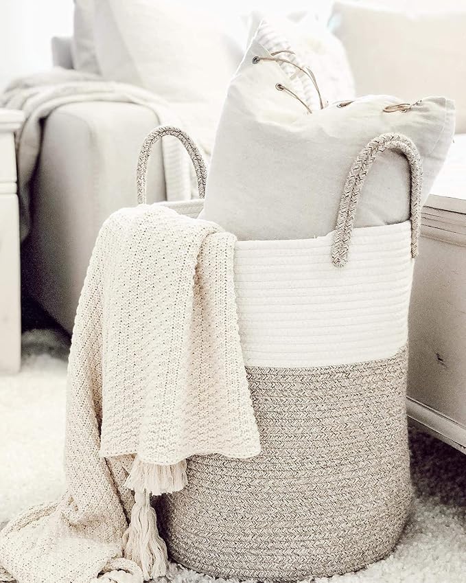 • Beautiful Addition to Your Boho Decor: Elevate your living room decor with this handwoven blanket basket. Neutral tones and minimalist design create a cozy, stylish vibe, perfect for farmhouse, Scandinavian, or boho decor aesthetics.