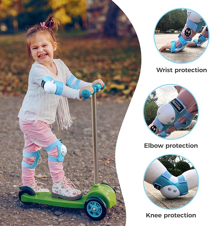 • Ventilated Fabrics - BOSONER kids knee pads and elbow pads set are made of high grade durable fabrics, with EVA foam padding and polycarbonate full-coverage caps, which has good shock absorption and cushioning effect to reduce the damage caused by sports fall