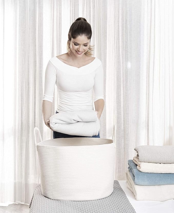 • Soft Yet Durable Cotton Rope: This premium woven laundry basket is crafted from cotton, no chemicals, no plastics. Safe for children and pets, with a soft texture that won’t scratch floors or hands.